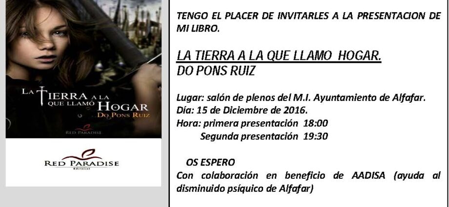 La Tierra a la que llamo Hogar, de Do Pons Ruiz. En el Salón de Plenos de l’Ajuntament d’Alfafar, el 15 de diciembre de 2016.Continue Reading
